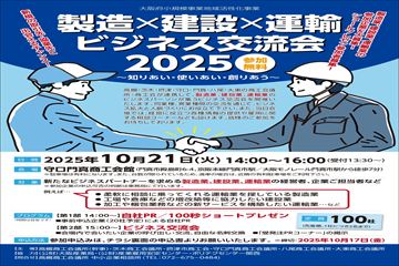| 【対 象】 | 新たなビジネスパートナーを求める製造業、建設業、運輸業の経営者、企業ご担当者など | |